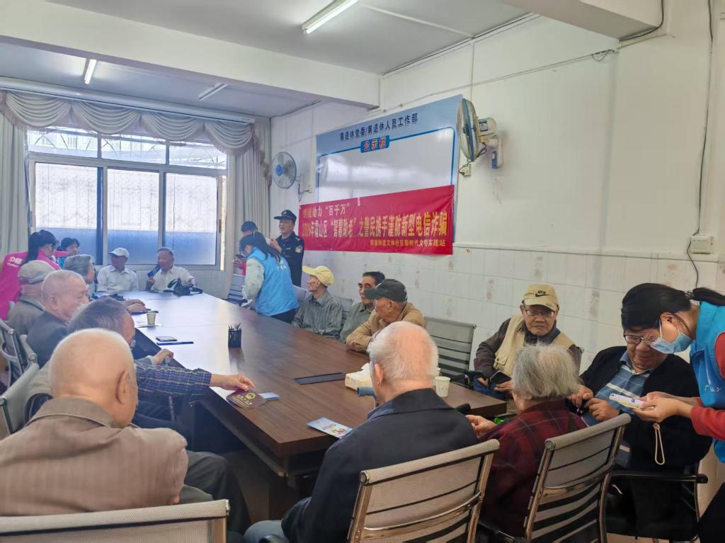 同日,本部门联合文体社区新时代文明实践站,启动 “智慧助老”之警民携手谨防新型电信诈骗活动。活动中,民警结合老年群体常见的诈骗案例,用通俗易懂的语言拆解新型电信诈骗的作案套路,细致分享防骗识别技巧,引导老同志提高防范意识,守护好自己的“钱袋子”。